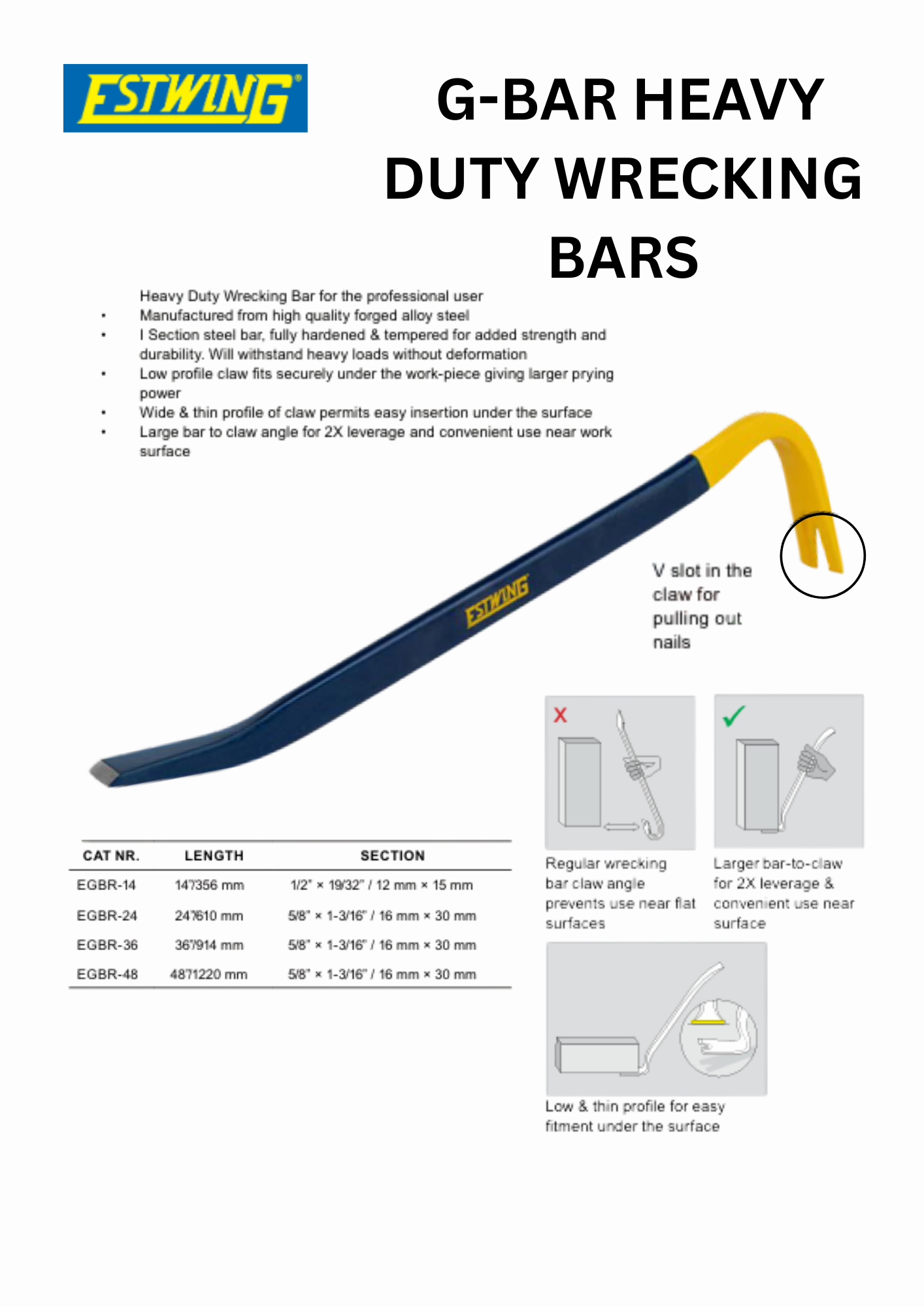 Key Features & Benefits – Estwing EGBR-36 Heavy Duty Wrecking Bar