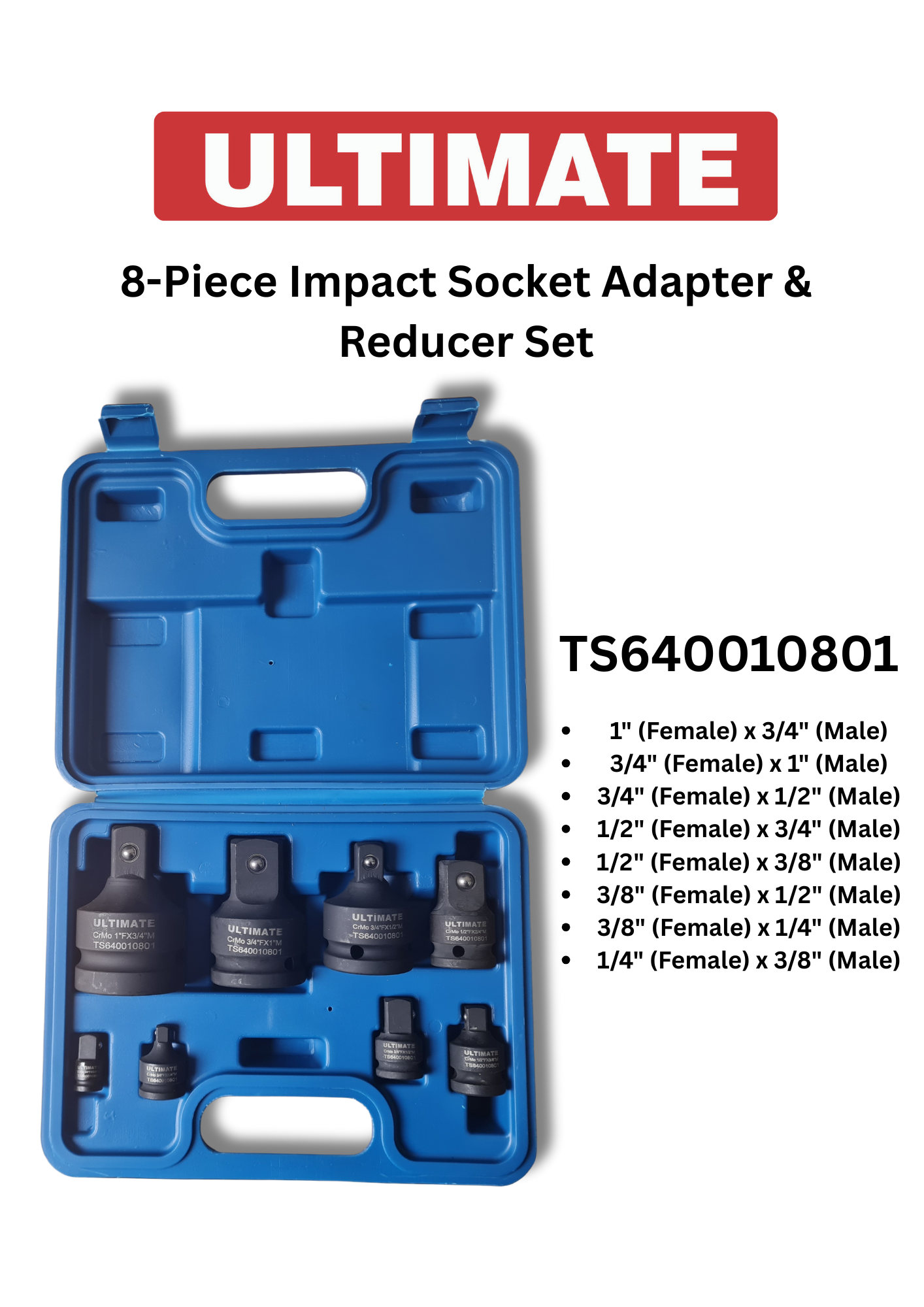 Ultimate Tools 8-Piece Impact Socket Adapter & Reducer Set (TS640010801)